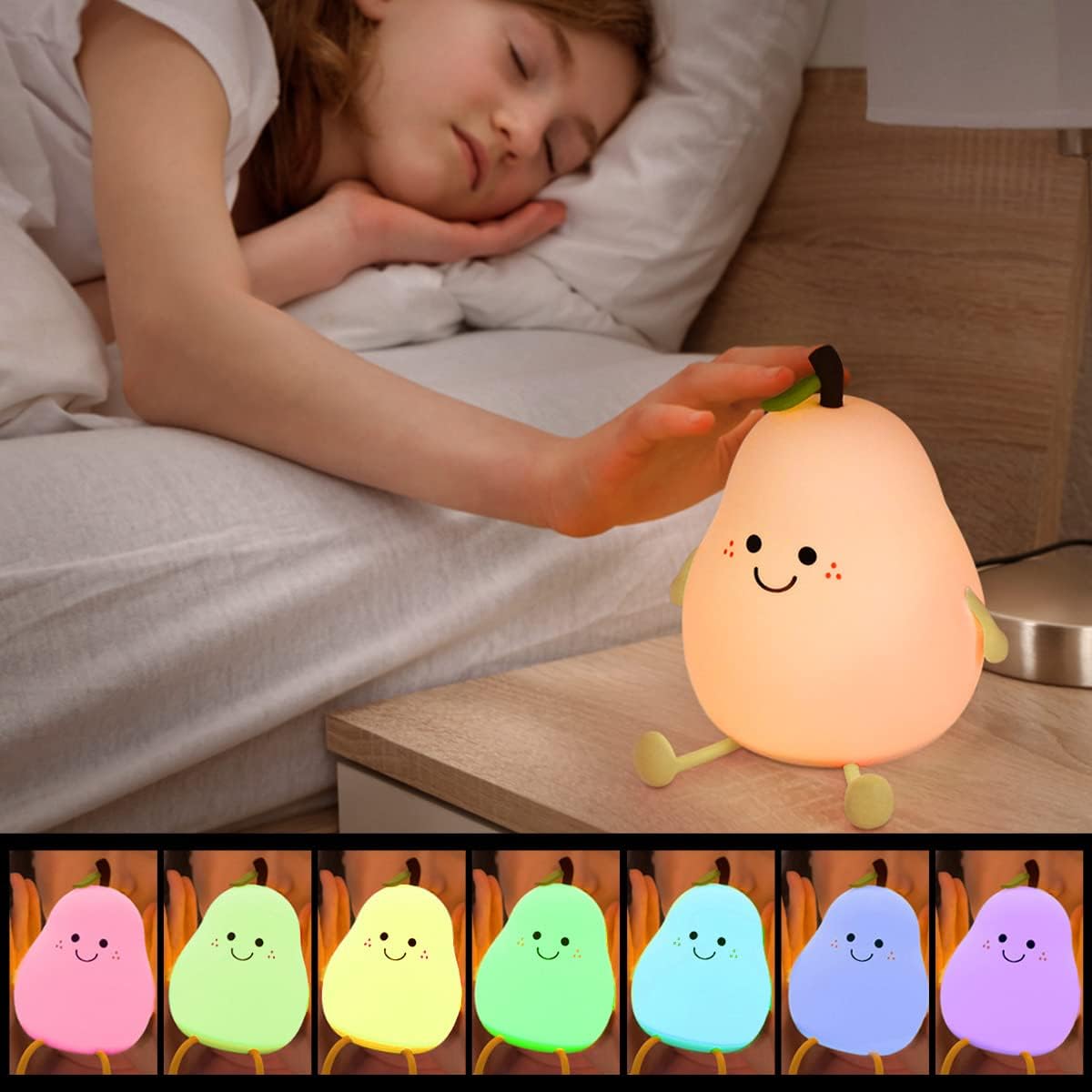 Mit seinem niedlichen Birnendesign zaubert das Nachtlicht ein Lächeln ins Kinderzimmer. Dank des langlebigen Akkus und 7 einstellbaren Farben sorgt es für stundenlange, beruhigende Beleuchtung – perfekt für gemütliche Nächte oder kreative Zeltabenteuer!
